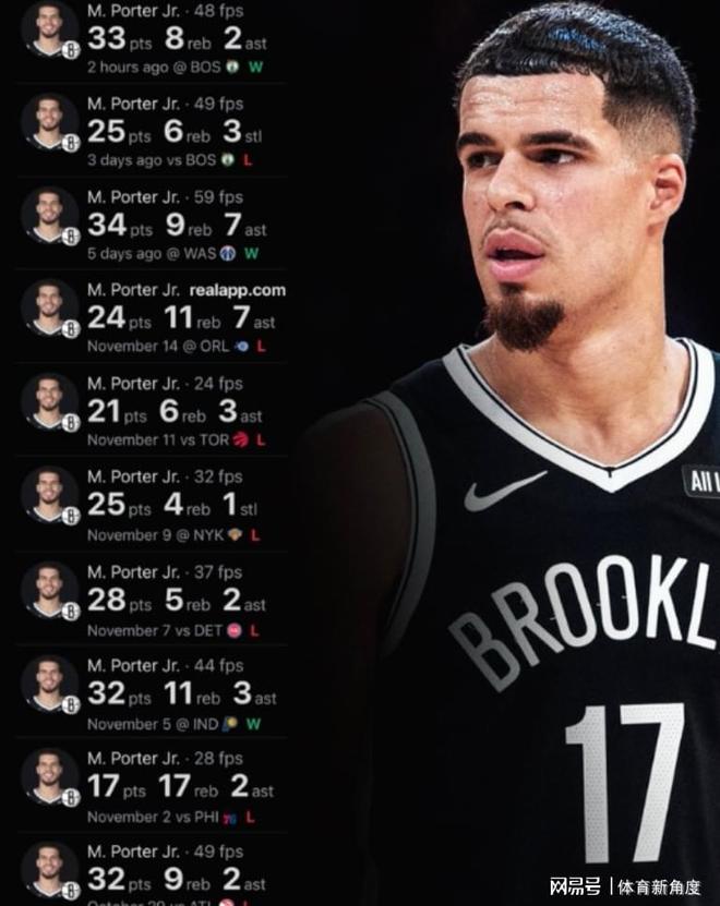 波特展现出的干拔投篮能力,其效率显著提升,着实令对手难以防范。观察波特在比赛中的得分表现,其能否得分在很大程度上取决于自身的手感状态,一旦起跳干拔,对手很难进行有效阻拦。在篮网队最近两场与凯尔特人队的对决中,波特分别砍下33分8篮板和25分6篮板的优异数据,两场比赛面对同一对手,合计贡献58分14篮板,堪称凯尔特人队的克星。