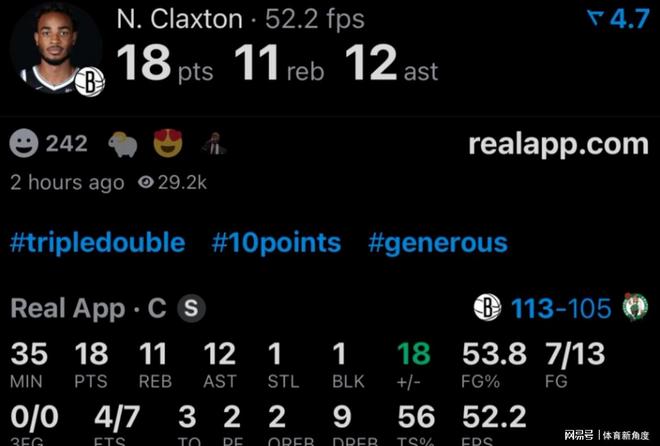 最具趣味性的一幕发生在第一节,凯尔特人队进攻结束后,小波特奋力抢下篮板球,然而此时队友“赵四”克拉克斯顿从后方也试图抢板,导致两名队友出现争抢情况。克拉克斯顿向波特说道:“这是我的篮板。”值得一提的是场比赛中的数据表现十分亮眼,全场贡献18分11篮板12助攻,成为篮网三双数据的中锋球员。推测他在赛前或许就预感到自己有望达成这一里程碑,因此对每个篮板都全力以赴,甚至不惜与队友展开竞争。