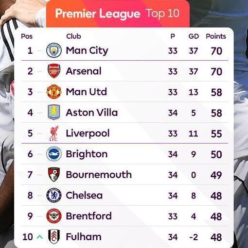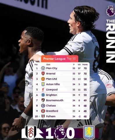 打完此役,阿斯顿维拉先赛积58分,与本轮未赛的曼联同分,仍居第四位,领先少赛一场、积55分的利物浦3分。稍后利物浦将坐镇安菲尔德主场迎战水晶宫,一旦利物浦拿下三分,积分就将追平维拉(58分),且很可能凭借净胜球优势直接重返第四,把维拉挤到第五。