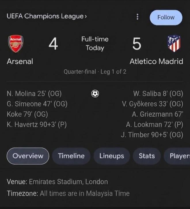 北京时间4月29日凌晨,欧冠半决赛首回合巴黎5-4战胜拜仁,双方上演了一场进球大战。基于大家对阿森纳和马竞两队球风的固有印象,大量外国网友制作梗图,表达对明天凌晨另一场欧冠半决赛精彩程度的担忧。