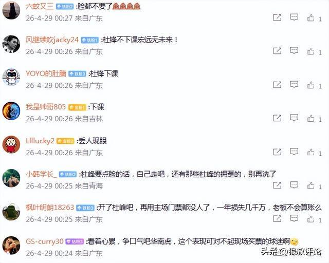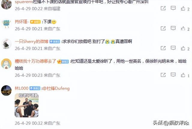 赛后,广东官方社媒更新战报引发大量的球迷围观,其中,杜锋下课的声音更是达到了新的高度。